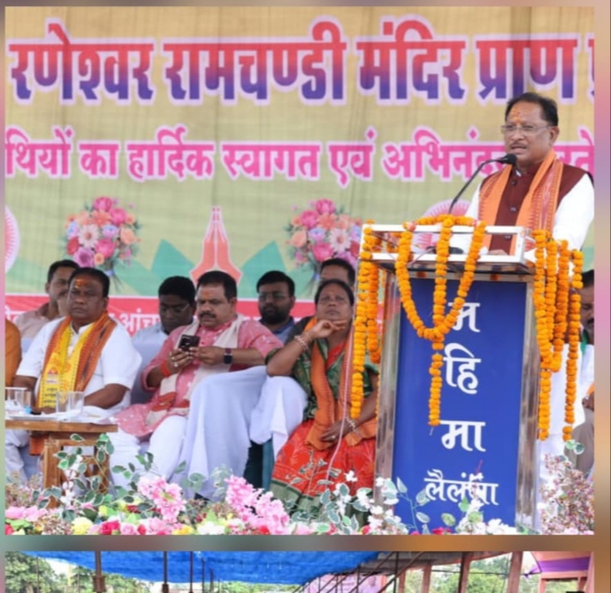 लक्ष्य न्यूज़ रायगढ़, मुख्यमंत्री श्री विष्णु देव साय आज रायगढ़ जिले के लैलूंगा विकासखंड के ग्राम झगरपुर में कोलता समाज द्वारा आयोजित श्री श्री रणेश्वर रामचंडी मंदिर प्राण प्रतिष्ठा महोत्सव में शामिल हुए। कार्यक्रम का आयोजन स्वामी आत्मानंद शासकीय हिंदी माध्यम उच्चतर माध्यमिक विद्यालय झगरपुर परिसर में किया गया, जहाँ समाज के पदाधिकारियों ने मुख्यमंत्री श्री विष्णु देव साय का पारंपरिक गजमाला पहनाकर और तिलक लगाकर आत्मीय स्वागत किया।