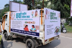 लक्ष्य न्यूज़ रायगढ़, 14 अक्टूबर 2025/ शासन के निर्देशानुसार एवं कलेक्टर श्री मयंक चतुर्वेदी के मार्गदर्शन में जिले में राष्ट्रीय पोषण माह का आयोजन 16 अक्टूबर तक किया जा रहा है। इसी क्रम में आज नगर निगम रायगढ़ के महापौर श्री जीवर्धन चौहान द्वारा पोषण रथ को हरी झंडी दिखाकर रवाना किया गया। इस अवसर पर उन्होंने कहा कि पोषण रथ आमजन को संतुलित आहार, स्वच्छता और स्वस्थ जीवनशैली के प्रति जागरूक करेगा। स्वस्थ समाज का निर्माण तभी संभव है जब हर नागरिक पोषण के महत्व को समझे।
