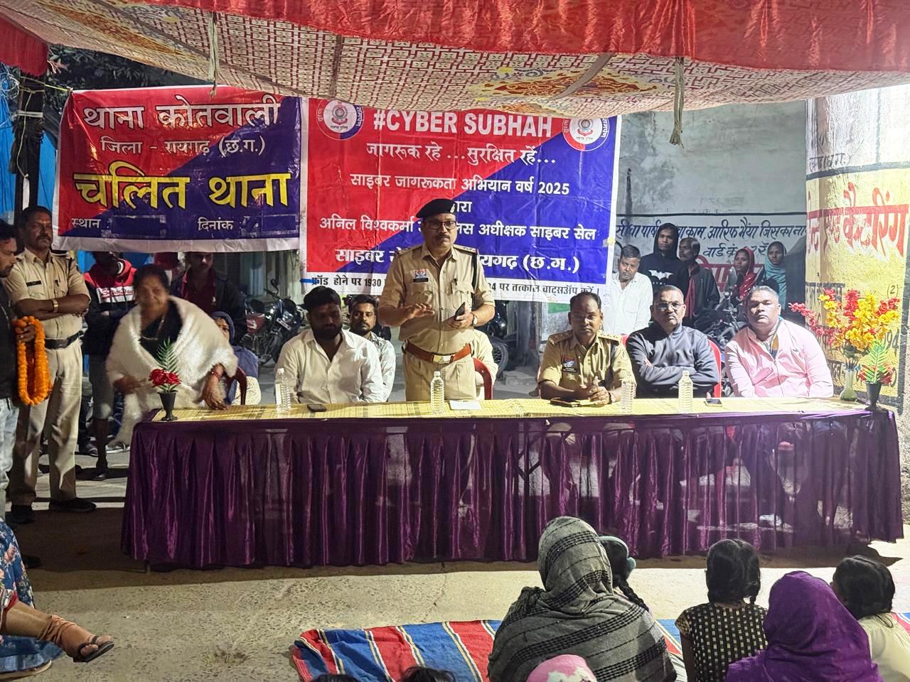 रायगढ़, 11 नवंबर। पुलिस अधीक्षक श्री दिव्यांग कुमार पटेल के कुशल मार्गदर्शन में जिलेभर में साइबर अपराधों के प्रति लोगों को जागरूक करने हेतु विशेष अभियान लगातार जारी है। इसी कड़ी में आज दिनांक 11 नवंबर 2025 को थाना कोतवाली क्षेत्र अंतर्गत वार्ड क्रमांक 07 में साइबर जागरूकता कार्यक्रम आयोजित किया गया। कार्यक्रम का उद्देश्य आम नागरिकों को बढ़ते ऑनलाइन अपराधों से सावधान करना और उनसे बचाव के तरीके बताना रहा।
