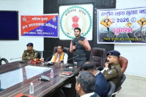 लक्ष्य न्यूज़ रायगढ़, / जिला कलेक्टोरेट स्थित सृजन सभाकक्ष में राष्ट्रीय सड़क सुरक्षा माह एवं महिला सुरक्षा जन-जागरूकता अभियान का भव्य शुभारंभ किया गया। इस अवसर पर राज्यसभा सांसद श्री देवेंद्र प्रताप सिंह, कलेक्टर श्री मयंक चतुर्वेदी एवं पुलिस अधीक्षक श्री दिव्यांग पटेल द्वारा संयुक्त रूप से जागरूकता वाहन को हरी झंडी दिखाकर रवाना किया गया। राष्ट्रीय सड़क सुरक्षा माह 31 जनवरी तक मनाया जाएगा, जिसका उद्देश्य सड़क दुर्घटनाओं में कमी लाना, नागरिकों में यातायात नियमों के प्रति जागरूकता बढ़ाना तथा सुरक्षित एवं जिम्मेदार ड्राइविंग को प्रोत्साहित करना है। वहीं राज्य स्थापना की रजत जयंती के अवसर पर आयोजित 11 दिवसीय महिला सुरक्षा जन-जागरूकता अभियान के माध्यम से महिलाओं को उनके अधिकारों, कानूनी सुरक्षा, पुलिस सहायता, शिक्षा, डिजिटल सुरक्षा, स्वास्थ्य, परामर्श सेवाओं, कौशल विकास एवं सामुदायिक सहभागिता के प्रति जागरूक करना है।