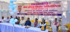 लक्ष्य न्यूज़ घरघोड़ा। जिंदल फाउण्डेशन, जेपीएल तमनार द्वारा प्रायोजित एवं आल स्टार क्रिकेट क्लब घरघोड़ा के तत्वावधान में 42वां ’ओ.पी.जिंदल स्मृति ऑल इंडिया क्रिकेट प्रतियोगिता घरघोड़ा 2025-26 का भव्य शुभारंभ श्री राधेश्याम राठिया, सांसद, रायगढ़ के मुख्य आतिथ्य में, श्री ऋषिकेेश शर्मा, प्रमुख, सीएसआर जेपीएल तमनार की अध्यक्षता एवं श्री शिव शर्मा, अध्यक्ष कांग्रेस घरघोड़ा मण्डल, श्री मनोज विश्वाल, अध्यक्ष, ऑल स्टार क्लब घरघोड़ा, श्री शिशु सिन्हा, अध्यक्ष आयोजन समिति, घरघोड़ा, श्री विजय डनसेना, श्री संतोष पाण्डेय, अध्यक्ष, श्री किशोर पटनायक, उपाध्यक्ष, श्री आशिष शर्मा, कोषाध्यक्ष, जिला क्रिकेटसंघ-रायगढ़, ऑल स्टार क्रिकेट क्लब घरघोड़ा के वरिष्ठ खिलाड़ी, विभिन्न टीमें एवं प्रबुद्ध गणमान्य खेल प्रेमियों कीे गरीमामय विशिष्ठ आतिथ्य में हुआ। प्रतियोगिता में विभिन्न राज्य छत्तीसगढ़, ओडिसा, झारखण्ड की 08 सशक्त टीमें भाग ले रही हैं। वहीं प्रतियोगित के दौरान बहुप्रतिक्षित डगआउट ( प्लेयर शेल्टर ) प्रदान किसा गया। जिसे लेकर खिलाडिय़ों में भारी उत्साह देखा गया।