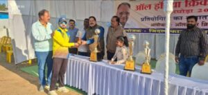 घरघोड़ा – जिंदल फाउण्डेशन, जेपीएल तमनार द्वारा प्रायोजित एवं आल स्टार क्रिकेट क्लब घरघोड़ा के तत्वावधान में आयोजित 42वां ’ओ.पी.जिंदल स्मृति आॅल इंडिया क्रिकेट प्रतियोगिता घरघोड़ा 2025-26 के आज चतुर्थ दिवस ग्रुप बी क्वार्टर फाइनल मैच खेले गए। जिला क्रिकेट संघ रायगढ़ में शानदार खेल का प्रदर्शन करते हुए एंबीशन ब्रजराजनगर की टीम को 73 रनों से हरा दिया। टाॅस जीतकर ब्रजराजनगर की टीम ने रायगढ़ जिला क्रिकेट संघ रायगढ़ को पहले बल्लेबाजी करने का न्योता दिया। ब्रजराजनगर का उसे समय गलत साबित होने लगा जब रायगढ़ के धाकड़ बल्लेबाजों ने शानदार बल्लेबाजी का प्रदर्शन करते हुए निर्धारित 35 ओवर जबरदस्त क्रिकेट का प्रदर्शन किया और चमकदार 7 विकेट खोकर 272 रन ठोक दिए। रायगढ़ के लिए अनुग्रह नारायण सिंह ने जहां 95 बाल में 16 चौके और 02 आसमानी छक्कों की सहायता से शानदार 127 रनों का योगदान दिया, वहीं परमात्मा पांडे ने भी बहती गंगा में हाथ धोते हुए 57 रन ठोक दिए। बृजराजनगर के लिए धनंजय, एम डी शाह और सचिन ने क्रमशः 2-2 विकेट लेने में सफल हुए। वह निर्धारित लक्ष्य का पीछा करने उत्तर ब्रजराजनगर के टीम के बल्लेबाजों ने भी शानदार खेल का प्रदर्शन किया अपने जुधारू खेल का प्रदर्शन करते हुए ब्रजराजनगर की टीम के लिए धनंजय ने धांसू पारी खेलते हुए 72 गेंदों में 09 चौकें और 05 लम्बे लम्बे छक्के की सहायता से 108 रन ठोक दिए। लेकिन ब्रजराजनागर टीम के अन्य बल्लेबाजों ने धनंजय का साथ नहीं दिया और उमेश गौतम 45 रन के अतिरिक्त सभी बल्लेबाज सस्ते में निपटते गए और एक समय मैच को जीतती प्रतीत होती ब्रजराजनगर की टीम 31.1 ओवर अपने सभी विकेट खोकर मात्र 223 बनाकर आउट हो गई और मैच को 49 रनो से मैच को हार्दिक बैठी। रायगढ़ के लिए आशीष कोरी ने कातिलाना गेंदबाजी का प्रदर्शन करते 04 विकेट चटकाये।