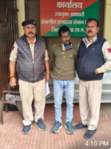 सरगुजा । आज संभागीय आबकारी उड़नदस्ता कार्यालय में मुखबिर से सूचना प्राप्त हुई की घुटरापारा निवासी नरेश गुप्ता अपने घर से नशीला इंजेक्शन बेच रहा है मुखबिर सूचना की विश्वसनीयता पर तत्काल सहायक जिला आबकारी अधिकारी रंजीत गुप्ता ने घुटरापारा में नरेश गुप्ता के घर दबिश दी, घर पहुंचते ही नरेश गुप्ता भागने का प्रयास किया परंतु उसे पकड़ लिया गया। उसके द्वारा पकड़े गए एक झोले से 10 नग REXOGESIC INJECTION तथा 10 नग AVIL INJECTION बरामद हुआ, आरोपी को एनडीपीएस एक्ट की धारा 22 C के तहत गिरफ्तार कर आज माननीय विशेष न्यायालय अंबिकापुर में रिमांड के लिए प्रस्तुत किया गया जहां से जेल दाखिल का आदेश प्राप्त हुआ।