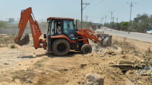 नगर निगम सीमा से लगे ग्राम बड़े रामपुर में शासकीय भूमि रकबा 07 डिसमिल पर अनाधिकृत रूप से संचालित फेब्रिकेशन दुकान को ध्वस्त किया गया तथा मुख्य सड़क मार्ग से लगी लगभग 10 डिसमिल भूमि को अतिक्रमण मुक्त कराया गया। ग्राम सांगीतराई में स्थानीय नागरिकों से प्राप्त शिकायत के आधार पर खसरा नंबर 382, रकबा 0.243 हेक्टेयर शासकीय भूमि पर अनुभव बिल्डर्स द्वारा की जा रही अवैध बाउंड्रीवाल को ध्वस्त कर भूमि को कब्जामुक्त किया गया।