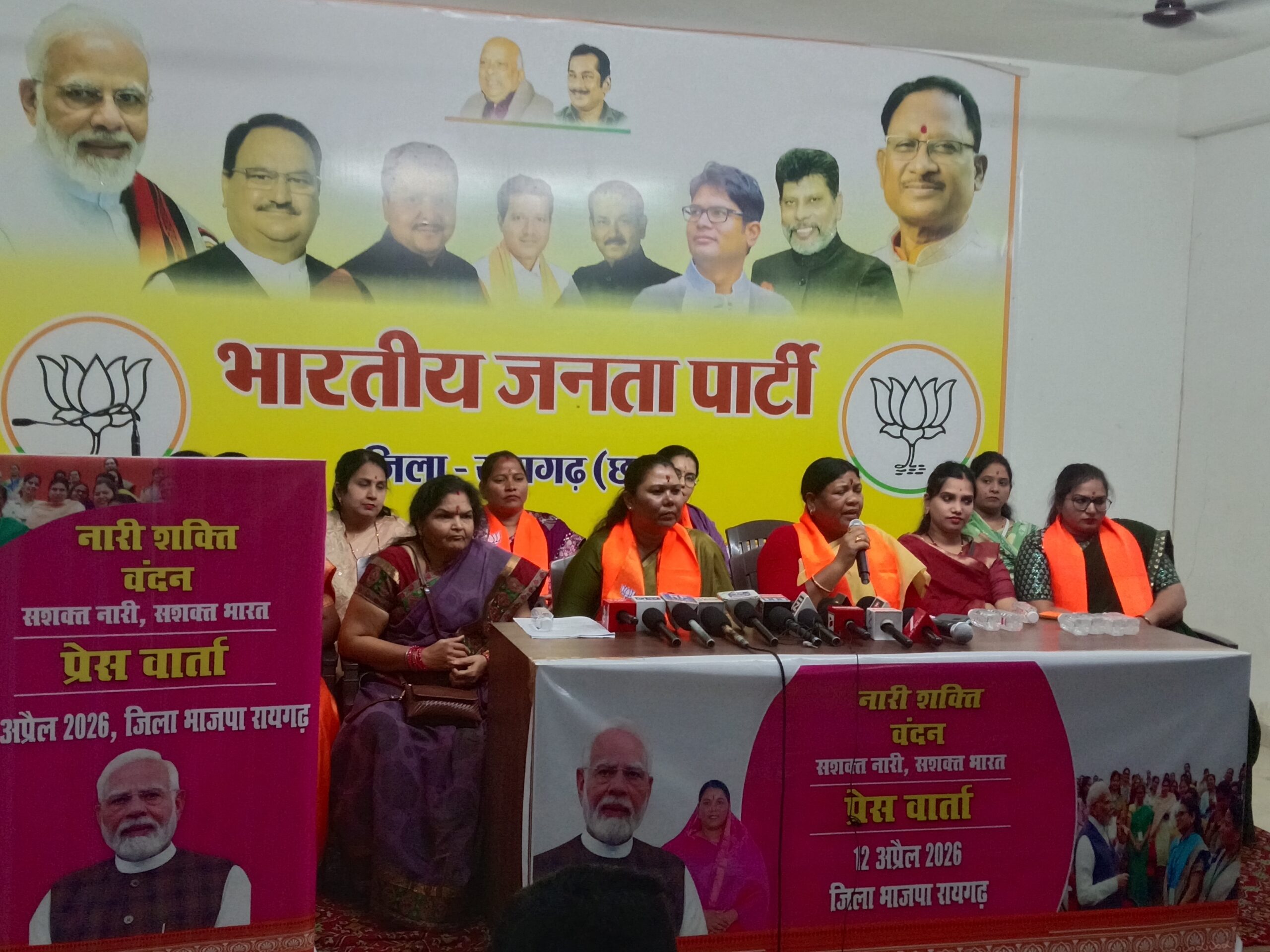 प्रवक्ता बब्बल पांडे ने जानकारी देते हुए कहा इस प्रेस वार्ता में महिला आरक्षण की झलक नजर आई। प्रेस वार्ता के दौरान स्टेज़ में केवल महिलाएं ही बैठी।गोमती साय विधायक पत्थलगांव,रायमुनी भगत विधायक जशपुर, शिखा गवेल जिला पंचायत अध्यक्ष,मधुलता पटेल जिलाध्यक्ष महिला मोर्चा,