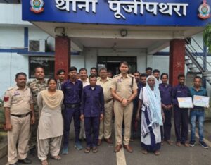रायगढ़ 13 जुलाई, – पुलिस अधीक्षक दिव्यांग पटेल के निर्देशन पर आज 13 जुलाई 2025 को जिले के विभिन्न थानों में ग्राम कोटवारों की बैठक आयोजित की गई, वहीं क्षेत्र के जिम्मेदार और संवेदनशील नागरिकों को प्रशस्ति पत्र व मेमेंटो भेंट कर सम्मानित किया गया। थाना पूंजीपथरा में इस क्रम में एक विशेष कार्यक्रम आयोजित हुआ, जिसमें सड़क दुर्घटनाओं के बाद “गोल्डन ऑवर्स” में घायलों की मदद करने वाले नागरिकों—गुड सेमैरिटन्स—का सार्वजनिक रूप से अभिनंदन किया गया।